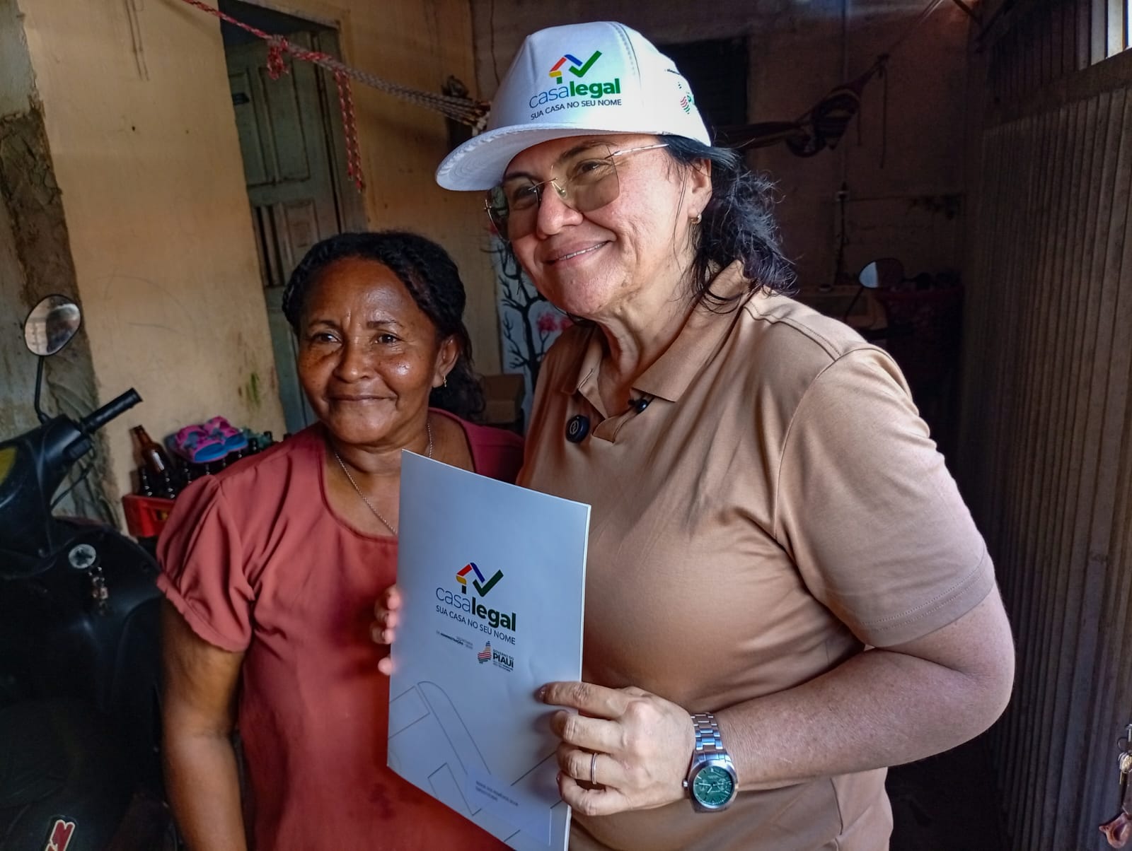 A moradora Raimunda Pereira destacou a importância da ação: “Ela veio em minha casa, a prefeita, isso é muito bom. Surpresa ótima e com o registro de minha casa.”