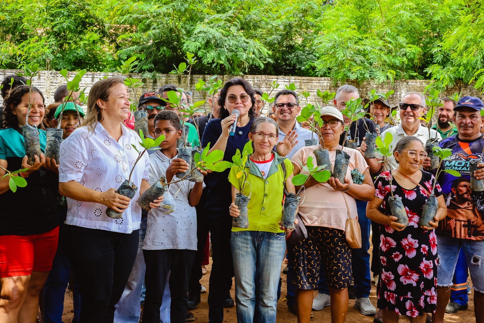A prefeita Jôve Oliveira Monteiro destacou: “Estamos entregando 2300 mudas para o nosso povo e estamos assim incentivando nossa agricultura familiar, muita gente aqui e muito sucesso.”
