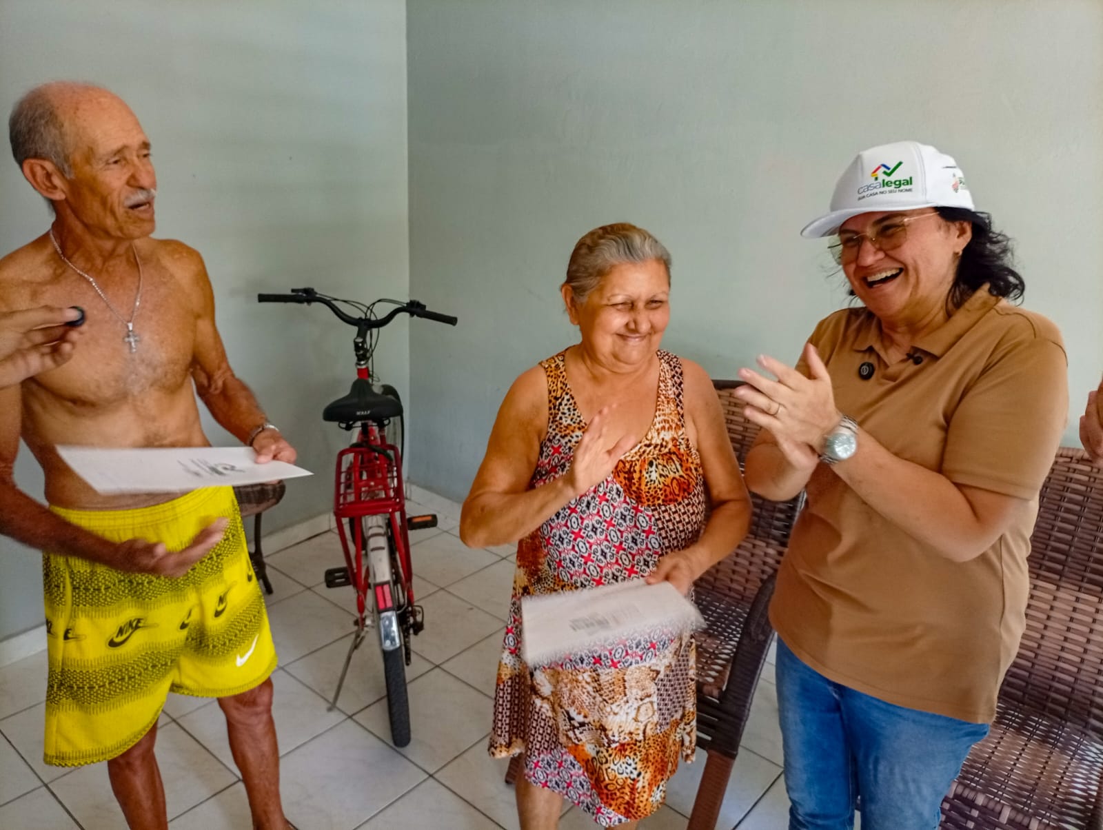 Lucivani Souza também celebrou: “Muito boa essa surpresa, a prefeita entregando o registro de minha casa, ótimo.”