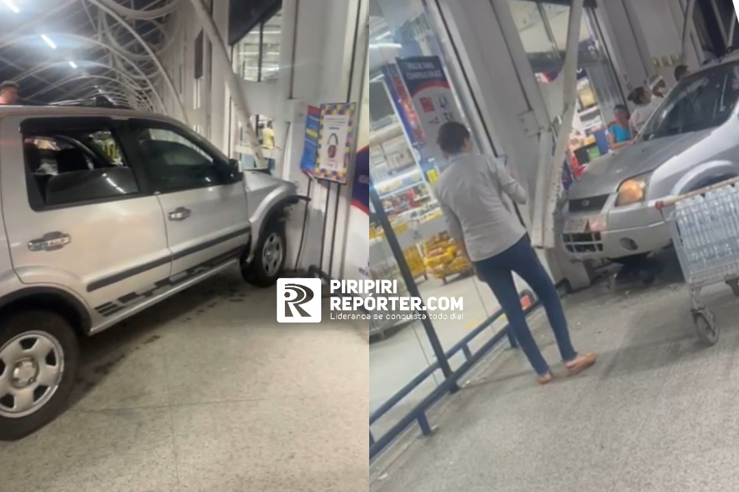 Motorista perde o controle e quase invade supermercado em Piripiri