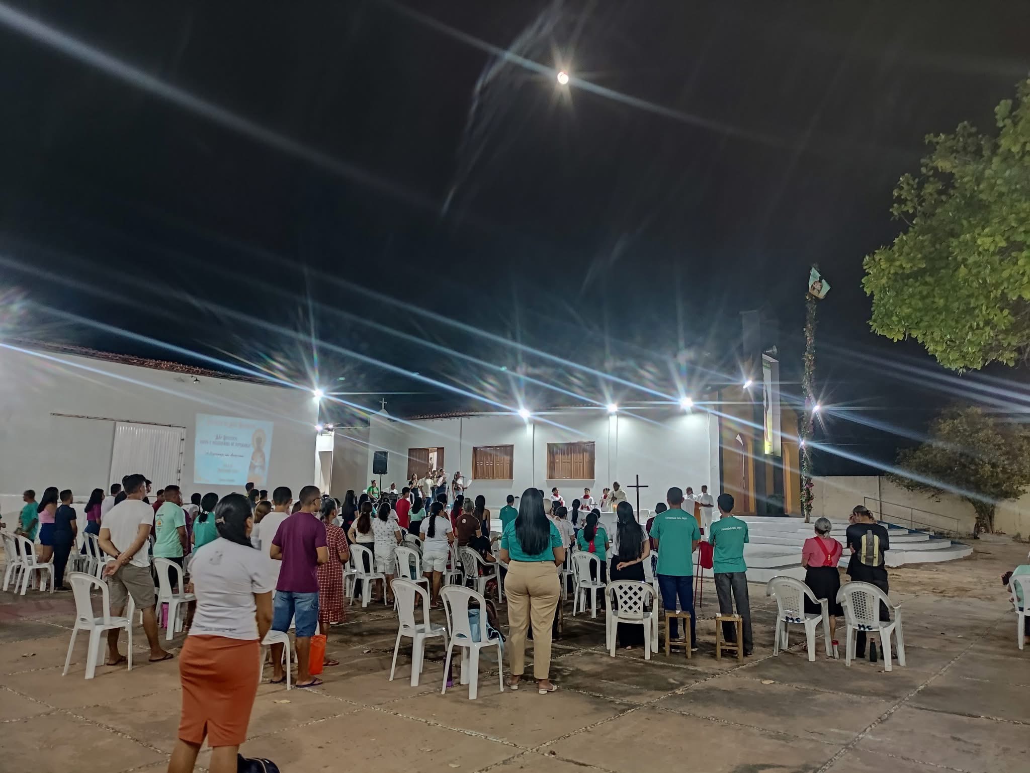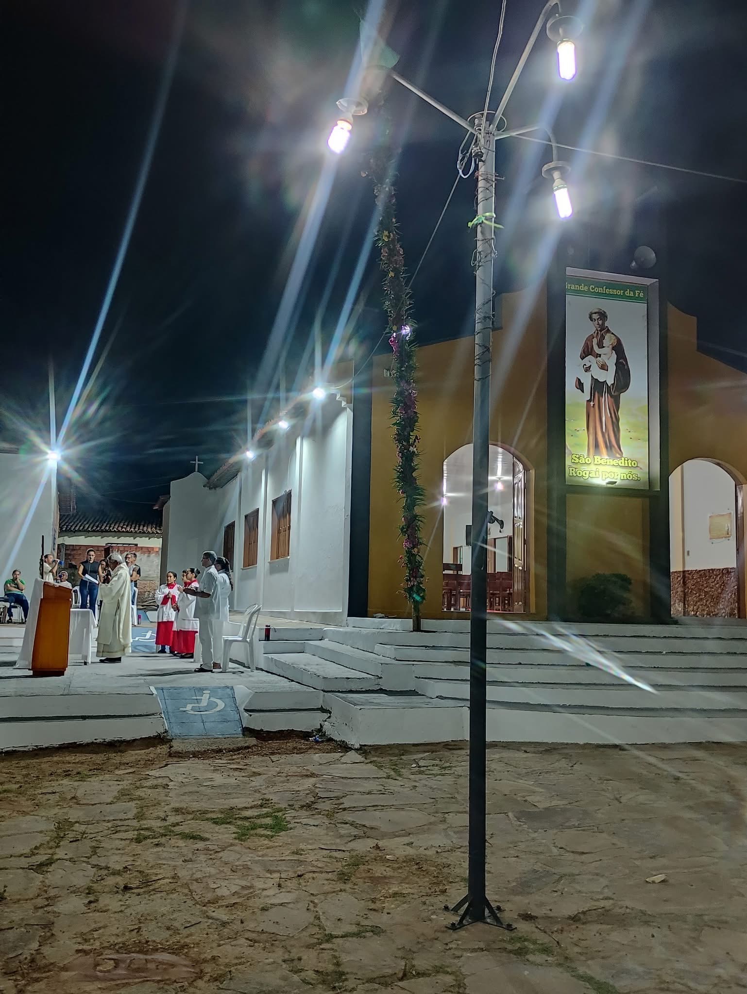 A abertura foi marcada pelo tradicional hasteamento do mastro da bandeira, e um momento de fé e devoção que reuniu a comunidade local para celebrar o início dos festejos. Durante a Celebração da Palavra, os fiéis puderam ouvir o testemunho do Diácono Gonzaga, que falou sobre os chamados de Deus e destacou que “missão boa é missão difícil”.