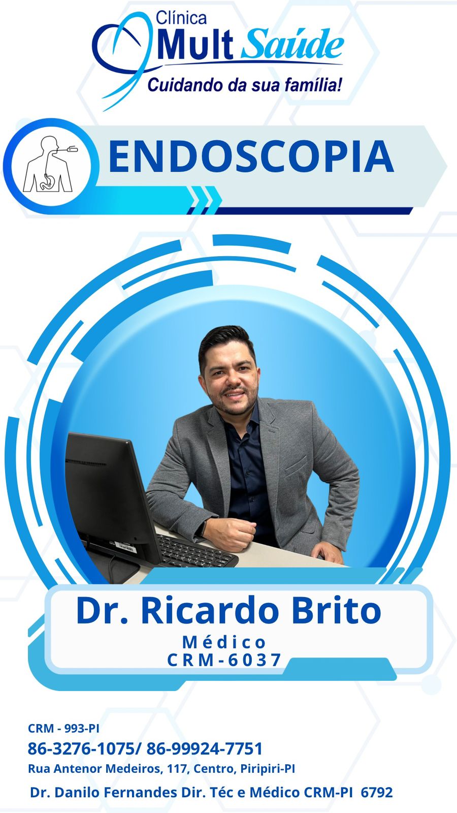 Dr Ricardo Brito será o médico responsável pela realização do exame, o mesmo possui uma vasta experiência e competência técnica para conduzir com segurança este procedimento.